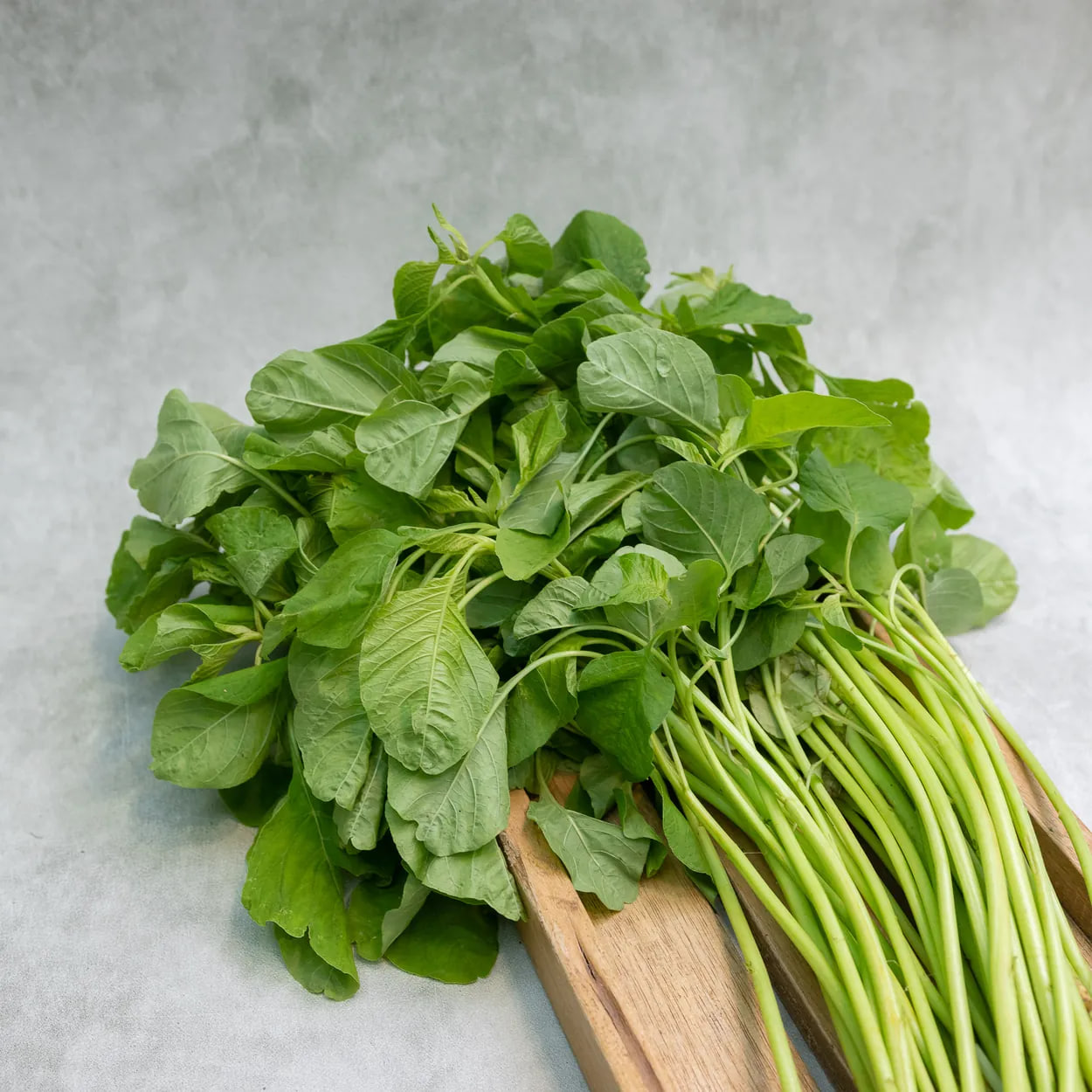 Bayam hijau biasanya dipanen langsung dari kebun sehingga kesegarannya tetap terjaga. Warna daunnya hijau cerah dengan batang yang lembut, membuatnya mudah diolah menjadi berbagai menu masakan rumahan. Selain lezat, bayam juga dikenal sebagai sumber vitamin dan mineral penting yang dibutuhkan tubuh.